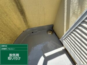 内部の湿気を外へ逃がすための脱気筒を設置します。これにより、防水層の膨れや剥がれを防ぎます。