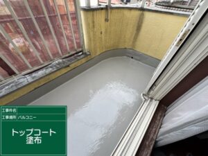 ベランダ全体に防水層がしっかりと形成され、排水機能も改善されました。