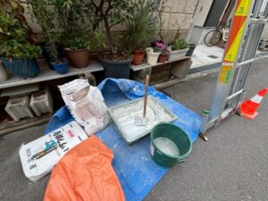 新しく施工する漆喰を作ります。