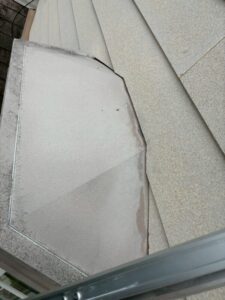 屋根材縁と板金の接合部は、シーリングの処置がきちんとされていないと雨漏りに直結しがちです。