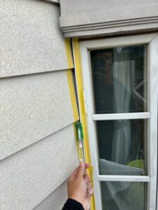 それぞれの箇所に養生→ケレン→プライマー塗布→変成シリコンの流れでシール処理を行いました。
