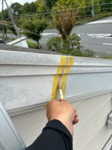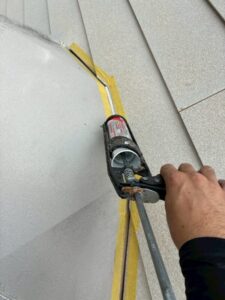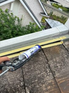 2枚目はケラバの外側、ケラバ部材の継ぎ目のシーリングです。