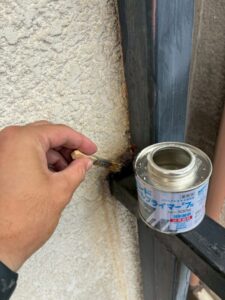 こちらもプライマーを塗布した上で、専用のシリコンを充填させていただきました。