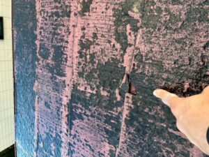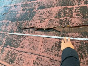 割れているスレートが多数確認されていましたが、こちらからも雨漏りが発生していました。