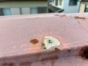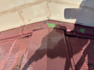 写真でもわかると思うのですが、こちらの塔屋と取り合い部分の棟板金が少し浮いています。