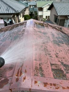 大屋根の棟板金部分、こちらからも雨漏りが発生していました。