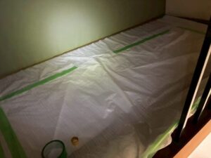 散水検査により住宅内に水がかかってしまわないよう、しっかりと養生してからおこなっていきます。