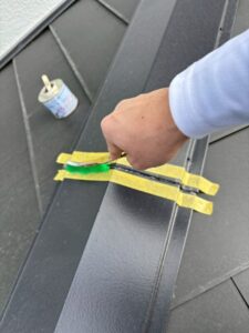 継ぎ目の部分にシーリング材を塗布して、棟板金どうしを繋ぎとめる役割を果たしてもらいます。