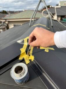 継ぎ目の部分にプライマーを塗布することで、棟板金どうしが接着します。