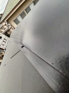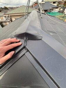棟板金は屋根の中でも最も雨漏りのリスクの高い部分ですので、しっかり止水処理をしないと雨漏りのリスクがあります。
