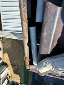 今回のケースでも、板金が飛ばされてしまって、様々な不具合が生じてしまいましたが、板金が錆びているというサインもありました。