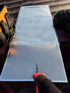 剥がれた板金の部分は、パンチメタルで雨樋を塞ぎます。