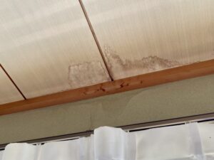 屋根裏に雨染みがないのに天井だけ濡れる場合、棟部分からの雨水が室内へ回り込んでいる可能性があります。